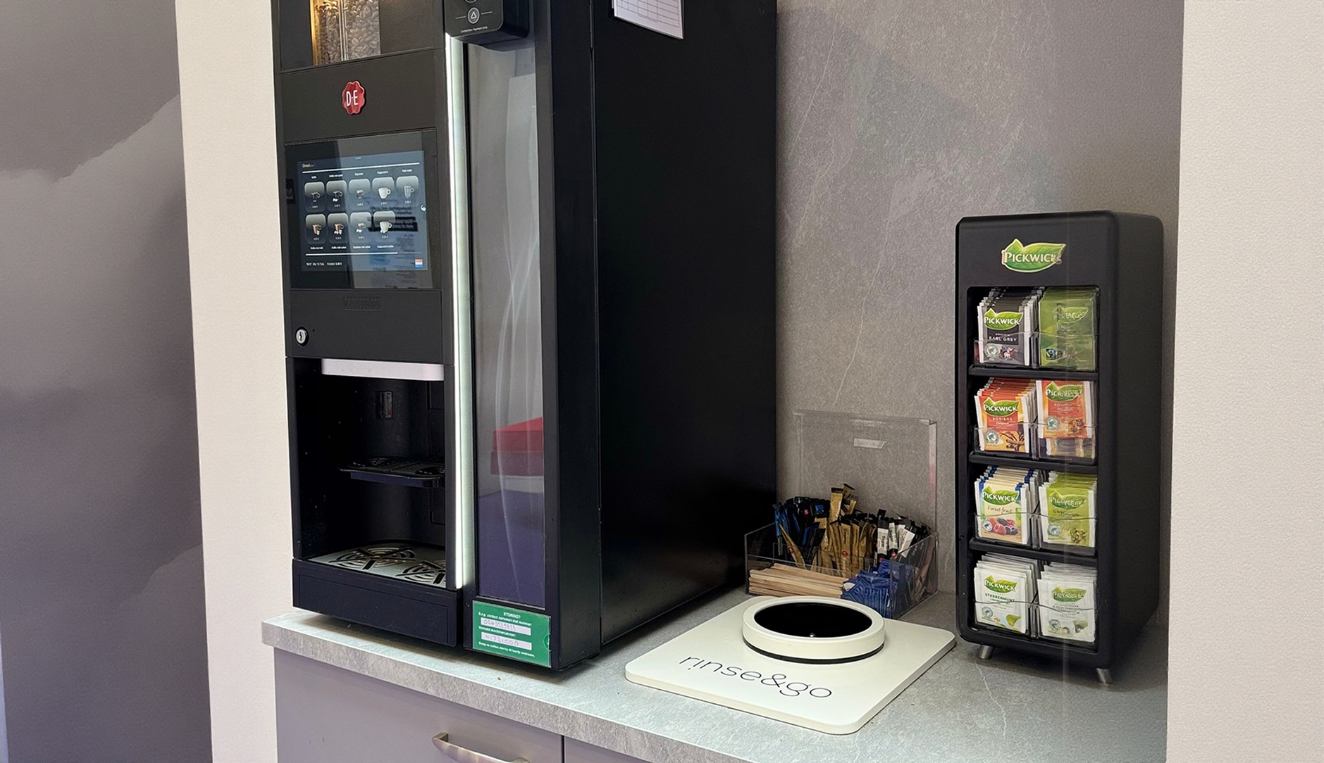 De Rinse&Go-spoelstations zijn ontwikkeld voor eenvoudig onderhoud. Wij adviseren om de bak dagelijks kort af te nemen met een vochtig doekje om ophoping van koffieprut te voorkomen. Maandelijks dient het spoelkruis uit het station te worden gehaald voor een grondige reiniging.